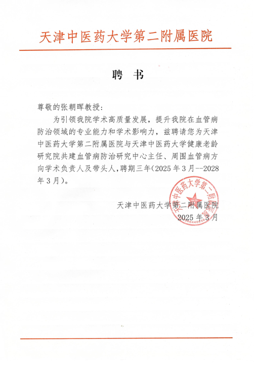 天津中医药大学健康老龄研究院与天津中医药大学第二附属医院共建泛血管病中西医结合防治研究中心主任