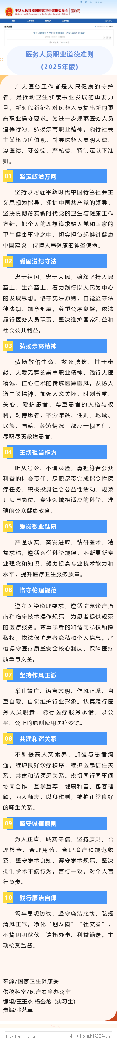 医务人员职业道德准则(2025年版)