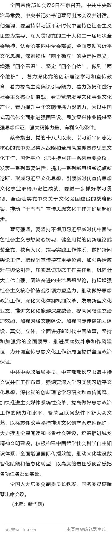 【关注】全国宣传部长会议在京召开 蔡奇出席并讲话